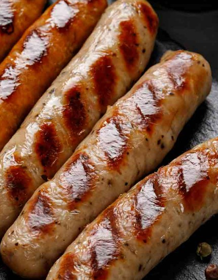 Juicy chicken sausages, golden finish,tender inside and slightly crisp outside.