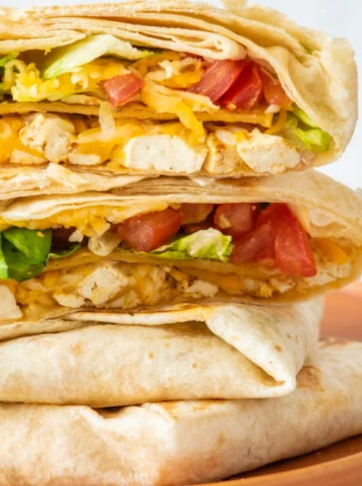 Crispy, juicy chicken wrapped with fresh veggies and a crunchy bite, perfect for a satisfying café treat. .